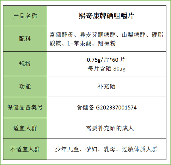 熙奇康牌硒咀嚼片